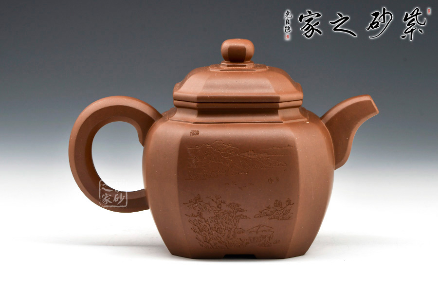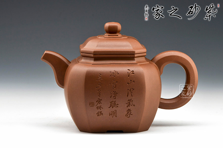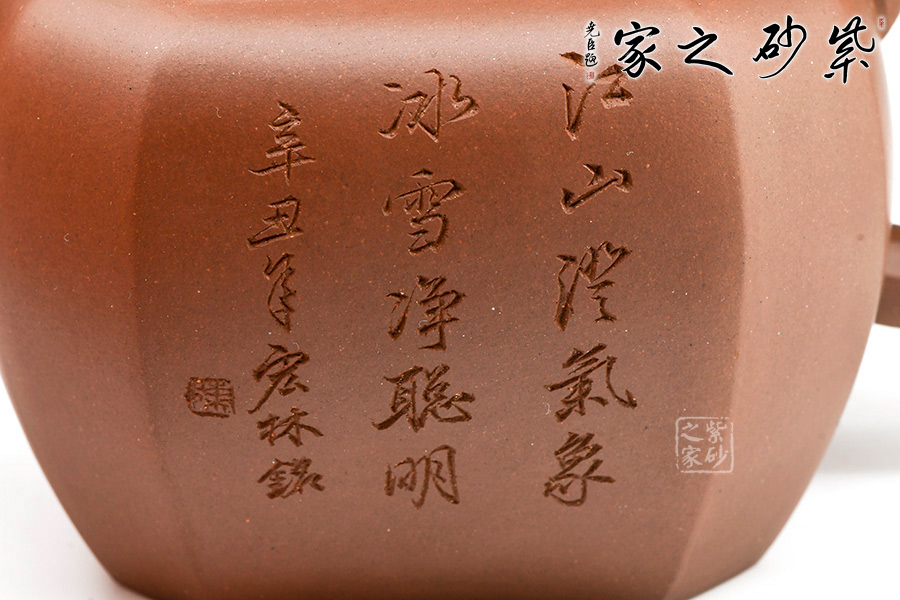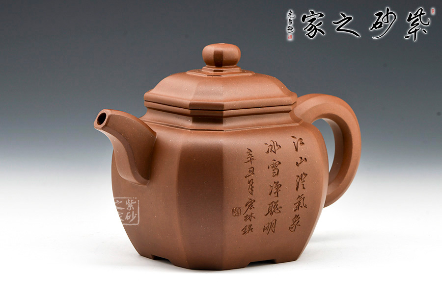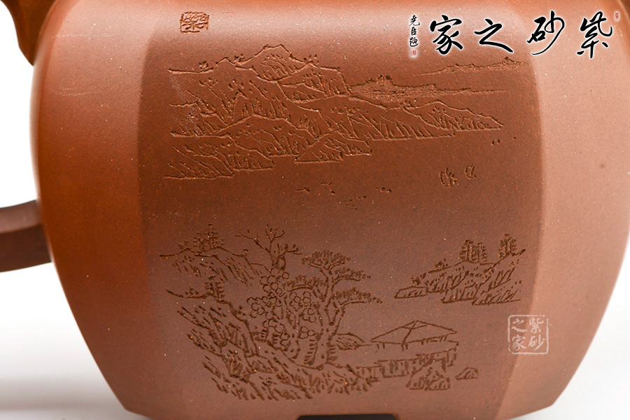 福旺八方,正高級(jí)工藝美術(shù)師王福君制作,選用上品羊脂泥。方器成型難度大,棱角分明,費(fèi)時(shí)費(fèi)工。正高級(jí)工藝美術(shù)師陳宏林、實(shí)力陶刻師天樂雙面裝飾,書畫陶刻別有韻味,三位大師合力打造品茗方器。