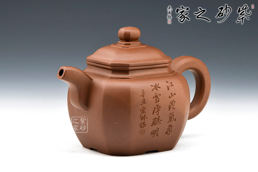 光貨離不開裝飾。俗話說(shuō)“壺隨字貴,字隨壺傳”:光壺不刻字,就是一把光壺;壺上面刻了大師、名人的字,一把壺的含金量就高了,收藏價(jià)值就更高,升值潛力就更大。王福君與中國(guó)工藝美術(shù)大師譚泉海合作最多,其次是徐安碧、鮑志強(qiáng)、毛國(guó)強(qiáng)(均為中國(guó)工藝美術(shù)大師、中國(guó)陶瓷藝術(shù)大師)。