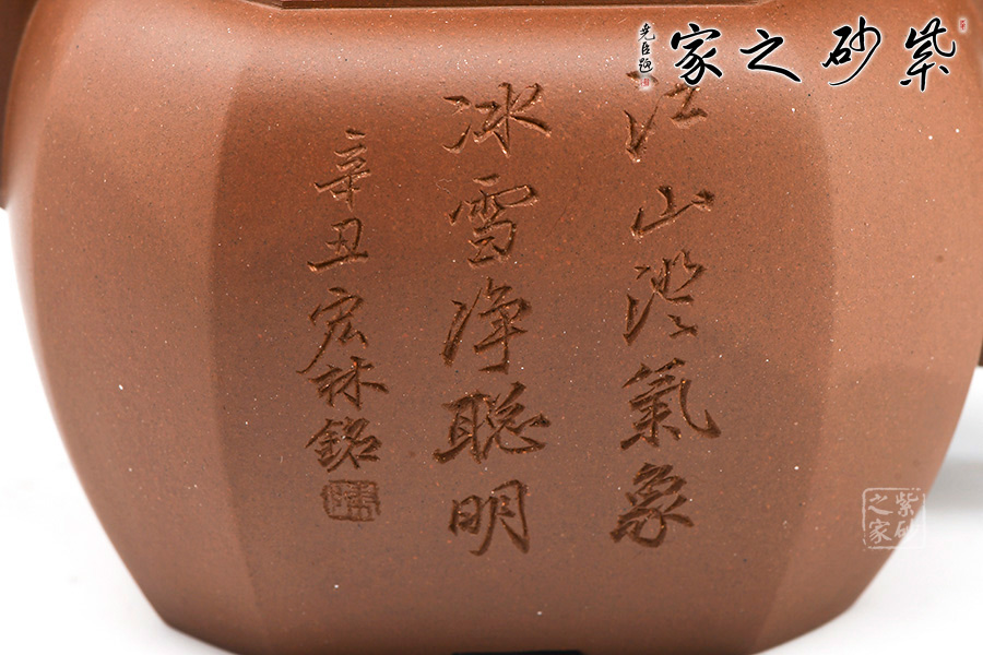 福旺八方,正高級(jí)工藝美術(shù)師王福君制作,選用上品羊脂泥。方器成型難度大,棱角分明,費(fèi)時(shí)費(fèi)工。正高級(jí)工藝美術(shù)師陳宏林、實(shí)力陶刻師天樂雙面裝飾,書畫陶刻別有韻味。