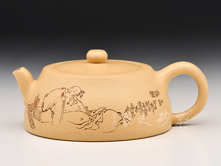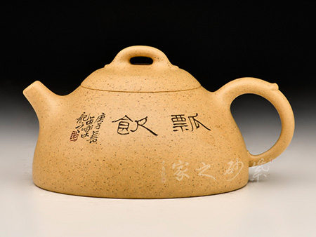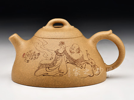 范小君,藝名“缶樂”,江蘇省陶瓷藝術(shù)大師,江蘇省鄉(xiāng)土人才技藝技能大師,正高級工藝美術(shù)師,師承中國工藝美術(shù)大師毛國強(qiáng),傳承刀筆藝術(shù),刻繪有特色,升值潛力大,泥料講究。