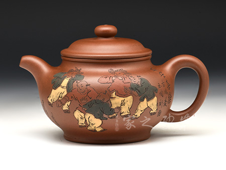 國(guó)家級(jí)工藝美術(shù)師,擅制大品壺,自制自銘,刻工精湛!