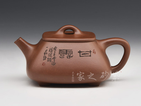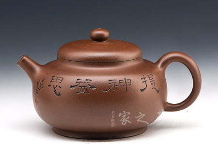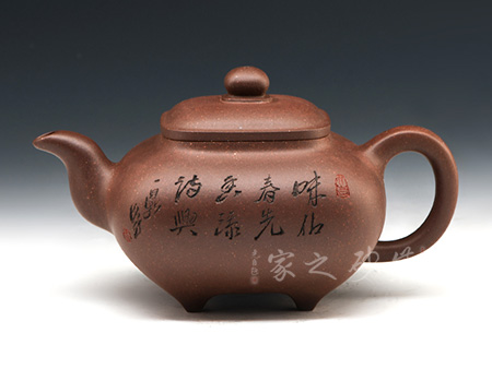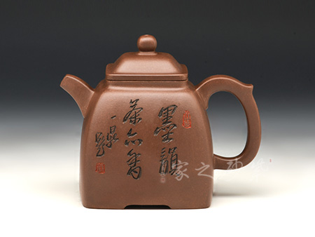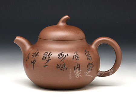 高級工藝美術(shù)師,高級鄉(xiāng)村振興技藝師、高級技師,精于陶刻,師從陶刻大家錢一清和中國工藝美術(shù)大師曹亞麟,又得中國工藝美術(shù)大師鮑志強(qiáng)指點(diǎn),陶刻制壺雙精。