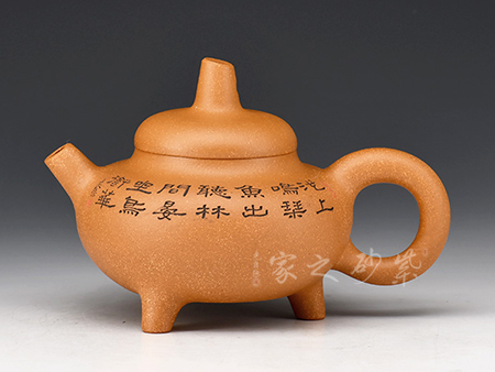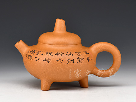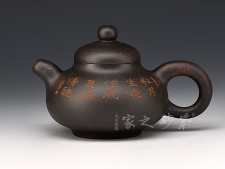 重新開(kāi)發(fā)出失傳百年的“玉砂料”,透氣性極佳,沖泡茶葉時(shí)能觀察到壺壁煙霧蒸騰的效果。家存數(shù)十噸老泥。是陶刻大師譚泉海的早期合作者,與眾多大師級(jí)人物平輩論交。