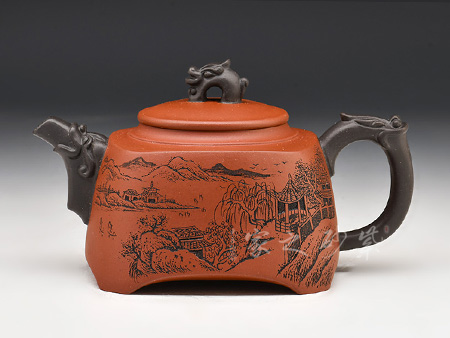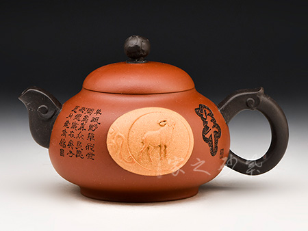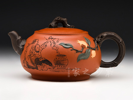 享有“雙色泥一絕”的美譽,江蘇省工藝美術大師,江蘇省工藝美術名人,研究員級高級工藝美術師;擅于自制自銘,精于雙色泥料制壺,裝飾手法采用金銀鑲嵌、堆泥貼花。