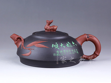 享有“雙色泥一絕”的美譽(yù),江蘇省工藝美術(shù)大師,江蘇省工藝美術(shù)名人,研究員級高級工藝美術(shù)師;擅于自制自銘,精于雙色泥料制壺,裝飾手法采用金銀鑲嵌、堆泥貼花。