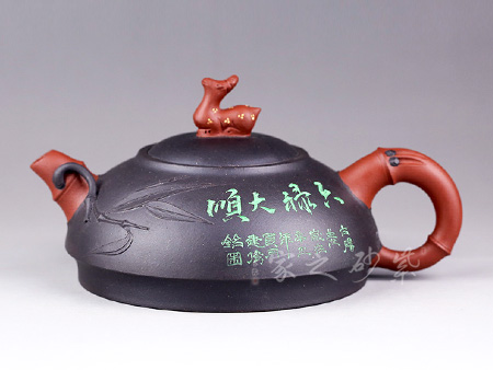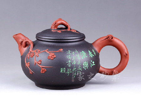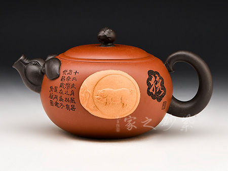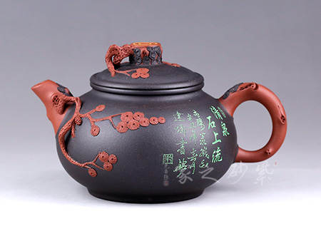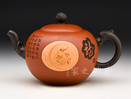 享有“雙色泥一絕”的美譽,江蘇省工藝美術大師,江蘇省工藝美術名人,研究員級高級工藝美術師;擅于自制自銘,精于雙色泥料制壺,裝飾手法采用金銀鑲嵌、堆泥貼花。