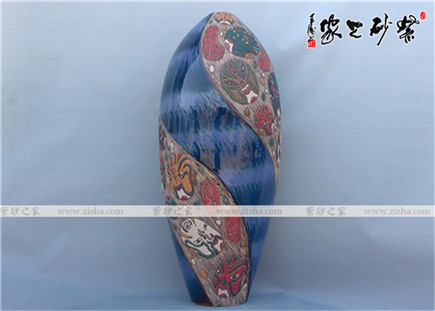 字藝林,中國陶瓷藝術(shù)大師、江蘇省工藝美術(shù)大師、研究員級(jí)高級(jí)工藝美術(shù)師,首創(chuàng)了彩釉畫花、彩釉噴、劃、填、挑綜合裝飾、玉珠釉裝飾等多種裝飾新工藝,開創(chuàng)了現(xiàn)代彩陶扁、尖、異形造型的獨(dú)特風(fēng)格。
