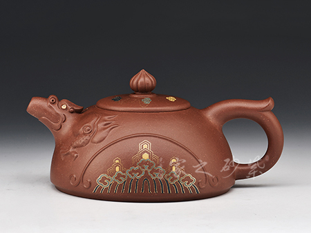 正高級工藝美術(shù)師,正高級鄉(xiāng)村振興技藝師,江蘇省工藝美術(shù)大師,師從顧景舟高徒/省大師沈遽華,紫砂金銀錯裝飾業(yè)內(nèi)首屈一指,被譽為當(dāng)代的“鑲金裝飾巨匠”,所制作品深受壺藝愛好者和藏家的青睞。